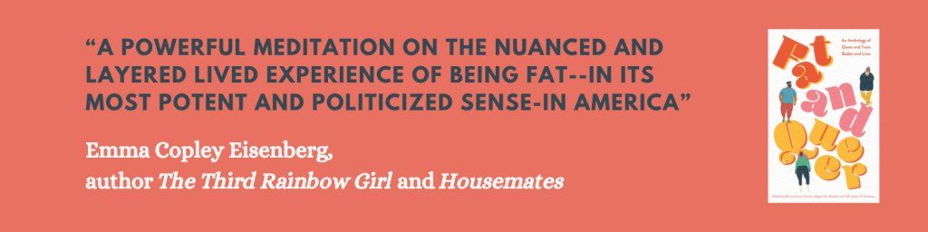 A one-of-a-kind of prose and poetry that radically explores the intersection of fat and queer identities, showcasing new, emerging, and established queer and trans writers from around the world. Edited by August Owens Grimm, Miguel M. Morales, and Tiff Joshua TJ Ferentini